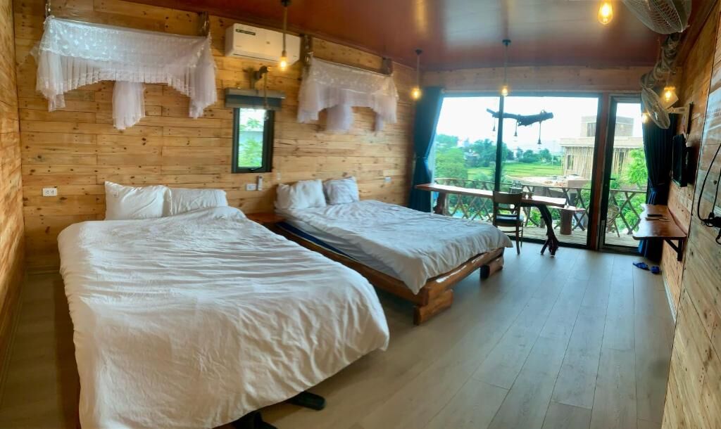 A Thía Homestay Villa là nơi dừng chân yên bình, nằm trên ngọn đồi nhỏ ở phường Điện Biên Phủ, với view thoáng ra cánh đồng lúa Mường Thanh rộng lớn. Khu nghỉ có không gian xanh mát, hồ bơi ngoài trời, vườn, bar, phòng tiện nghi (máy điều hòa, Wi-Fi miễn phí), nhiều phòng có ban công hoặc võng thư giãn. Du khách có thể thuê xe đạp miễn phí để đi dạo quanh ruộng lúa, tận hưởng không khí trong lành và hoàng hôn nhẹ nhàng.