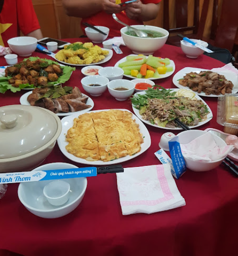 Nhà hàng Vinh Thơm là sự kết hợp hài hòa, tinh tế hương vị đặc sắc của ẩm thực Tây Bắc, ẩm thực Á - Âu. Với những món ăn hấp dẫn và độc đáo, nơi đây mang đến những trải nghiệm văn hóa ẩm thực phong phú, đa dạng. Ngoài ra nhà hàng còn nhận đặt tiệc với thực đơn theo yêu cầu của thực khách. Đội ngũ đầu bếp chuyên nghiệp, có kinh nghiệm trong chế biến cùng với không gian nhà hàng rộng rãi, trang trí bắt mắt sẽ tạo cho quý khách sự thoải mái và hài lòng trong từng món ăn và cách phục vụ.